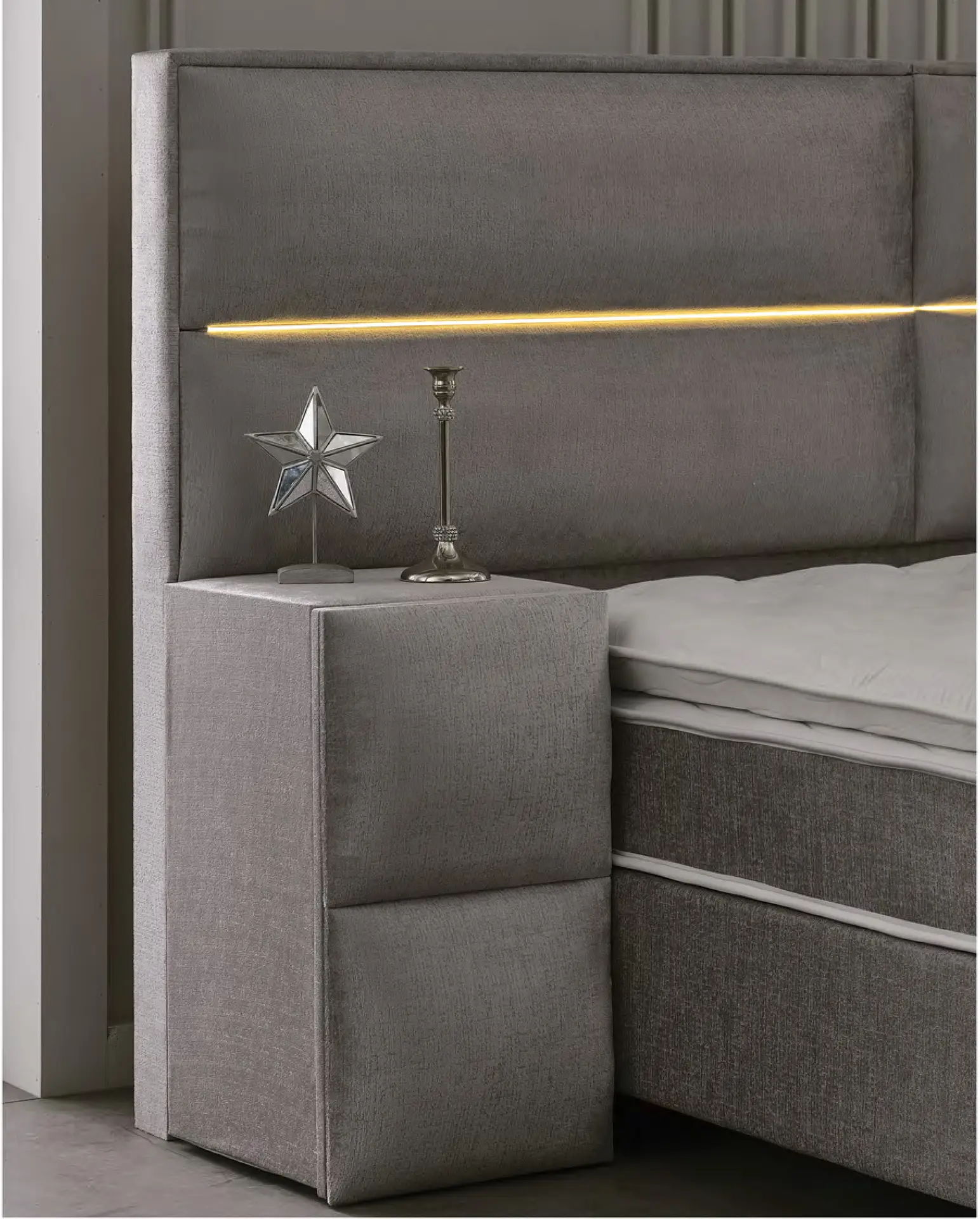 פס תאורת LED מובנה בראש המיטה מוסיף אווירה רכה ומרגיעה בשעות החשכה. התאורה יוצרת תחושת חמימות ומרווח אישי מושלם לפני השינה. פונקציונליות גבוהה וסטייל מתוחכם נפגשים בכל פרט קטן במיטה הזו. המיטה מגיעה במבחר רחב של מידות, כך שתתאים לכל חדר שינה. המיטה מספקת פתרון עיצובי חכם שמחבר בין חדשנות ליופי נקי. זוהי לא רק מיטה, זו חוויית שינה שמרימה את כל חלל החדר לרמה אחרת. רימו נולדה לשדרג את חוויית השינה ולהפוך כל חדר למקום שנעים להתעורר בו. עם Rimo אתם לא רק ישנים טוב, אתם חיים בסטנדרט אחר. המראה האלגנטי משתלב בקלות עם תאורה רכה ואלמנטים עיצוביים נוספים בחדר. כל לילה עם Rimo מרגיש כמו שהות בסוויטת בוטיק פרטית. העיצוב החכם משלב בין קווים מודרניים לנוחות קלאסית שלא מתפשרת. זהו הרגע שבו עיצוב מרגש פוגש שינה עמוקה ונעימה באמת.
