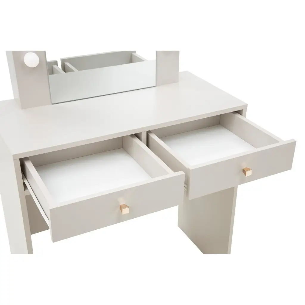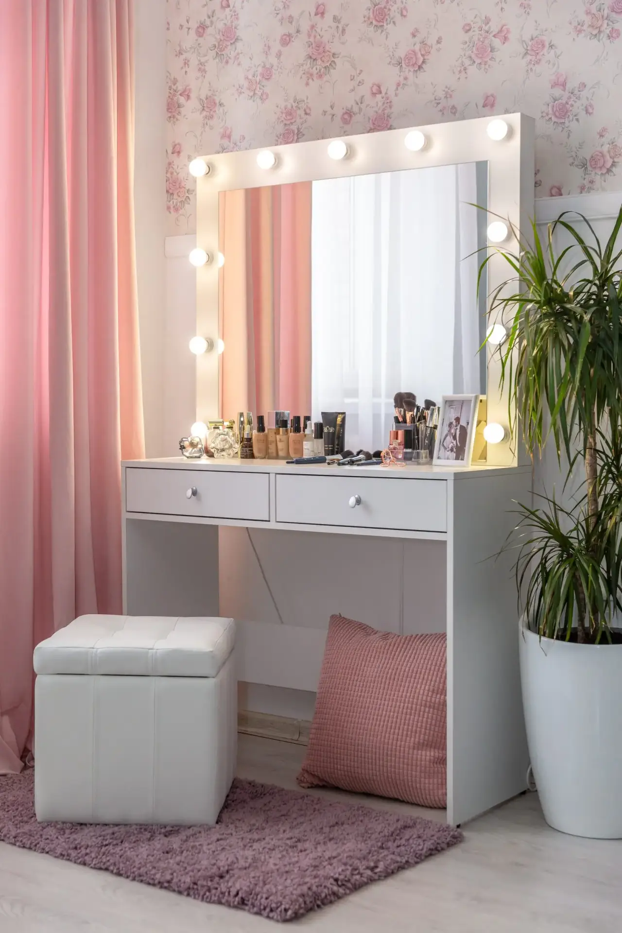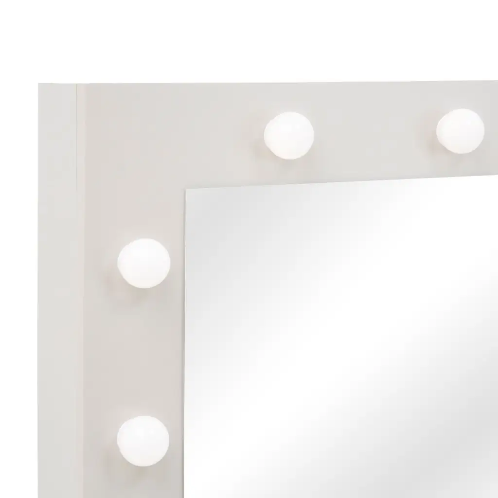 המראה המרכזית מוקפת בתאורת LED מובנית המדמה אור טבעי איכותי ומחמיא במיוחד. יתרה מזאת, תאורת הלדים הייחודית מונעת צללים ומאפשרת איפור מדויק בכל שעות היום. כמו כן, עוצמת התאורה ניתנת לכיוון בהתאם לצרכייך ומצבי האור המשתנים בחדר. אי לכך, תוכלי להתאים את חווית האיפור בדיוק לפי העדפותייך האישיות.
