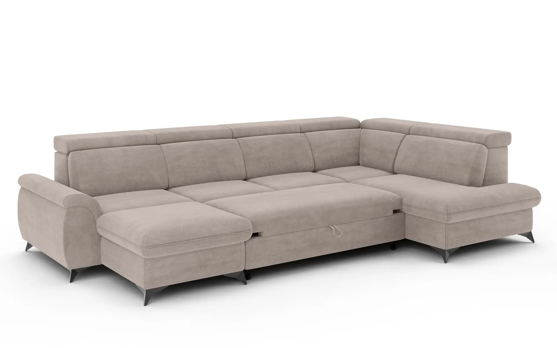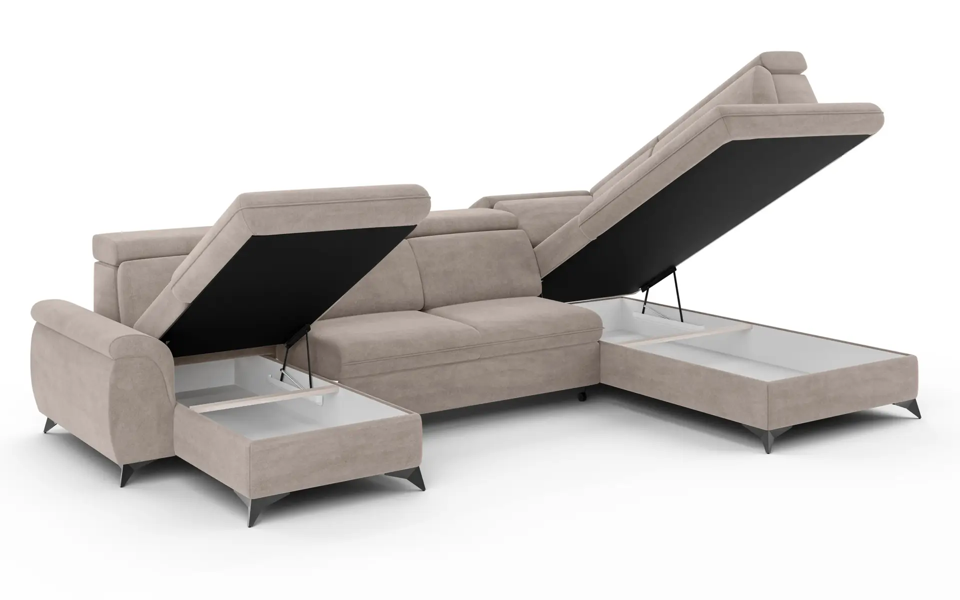 בנוסף, מערכת הישיבה כוללת ארגז מצעים מרווח, שמספק מקום אחסון נוסף ופרקטי. סגנון אלגנטי זה מתבל את הבית ברגלי כרום מתכת שחורות שמוסיפות טאץ’ של יוקרה. בעזרת פונקציית הפתיחה החדשנית, תוכלו להמיר את הסלון בקלות למיטה זוגית ולהנות מפתרון אירוח מושלם. הסלון לא רק עונה על הצורך בנוחות אלא גם מציע עיצוב מעודן שמתאים לכל חדר בבית. דגם Montana U מביא עמו את השילוב המושלם של נוחות, סגנון ופרקטיות.