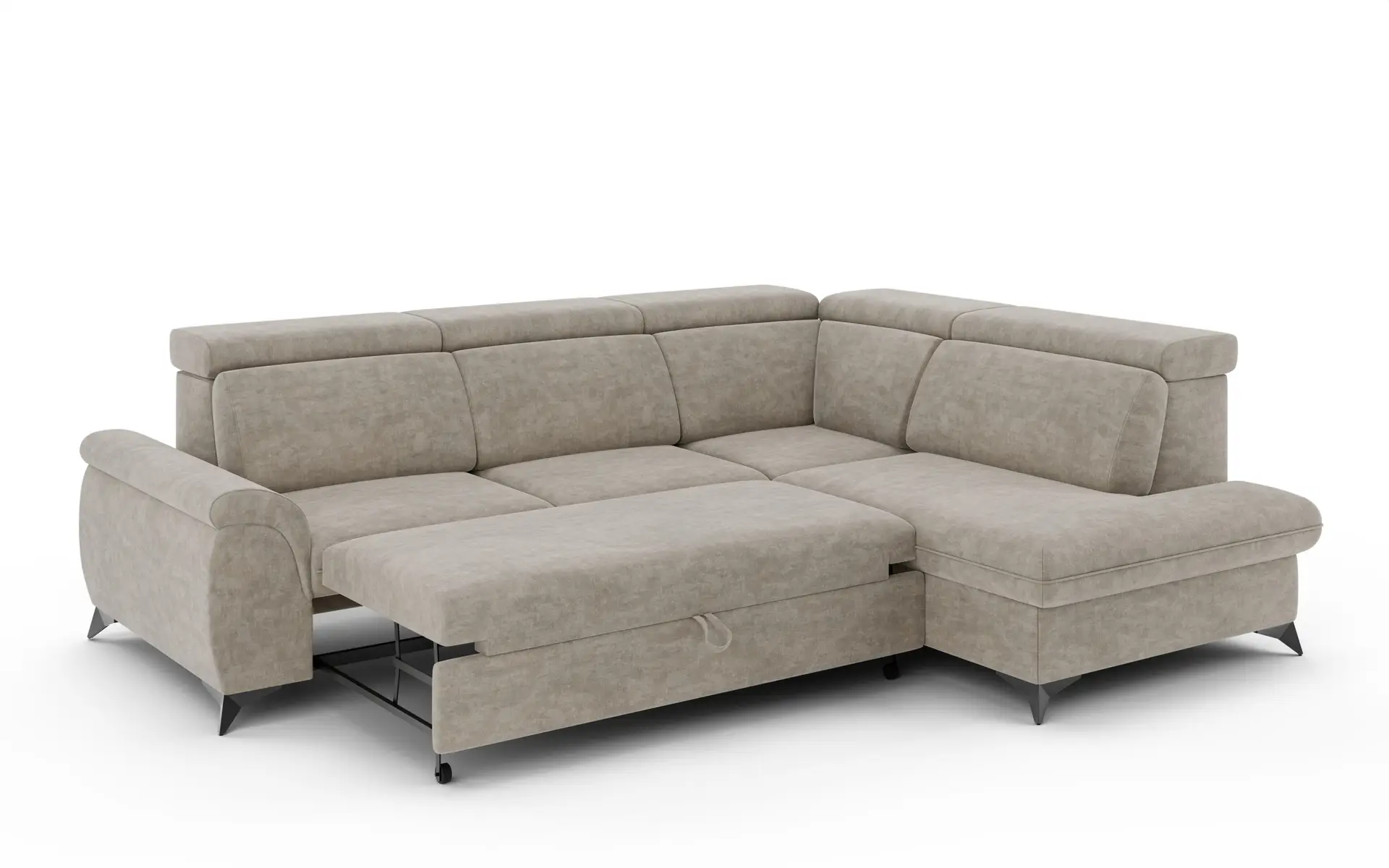 בנוסף, מערכת הישיבה כוללת ארגז מצעים מרווח, שמספק מקום אחסון נוסף ופרקטי. סגנון אלגנטי זה מתבל את הבית ברגלי כרום מתכת שחורות שמוסיפות טאץ’ של יוקרה. בעזרת פונקציית הפתיחה החדשנית, תוכלו להמיר את הסלון הפינתי בקלות למיטה זוגית ולהנות מפתרון אירוח מושלם. הסלון לא רק עונה על הצורך בנוחות אלא גם מציע עיצוב מעודן שמתאים לכל חדר בבית. דגם Montana מביא עמו את השילוב המושלם של נוחות, סגנון ופרקטיות.